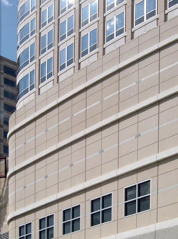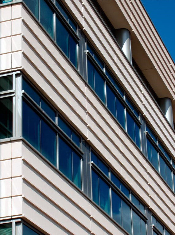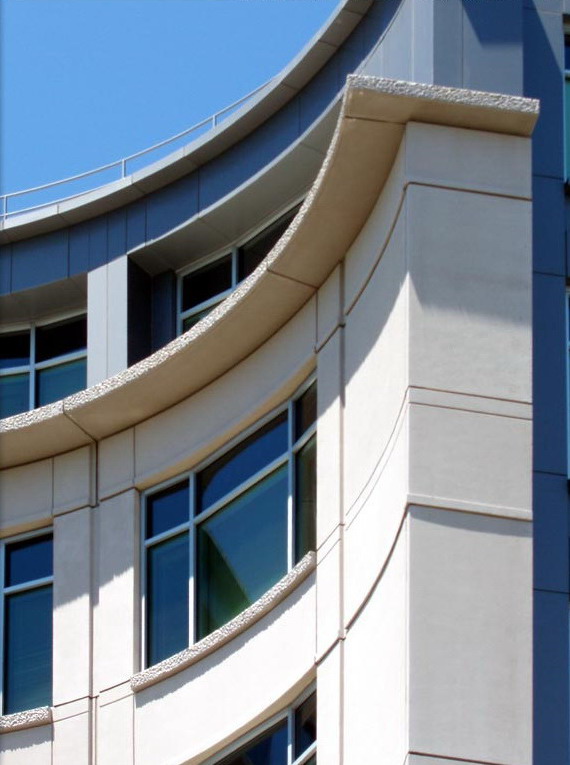 El GRC permite diseñar con geometrías, texturas y colores indicados para edificios singulares. Fachadas curvas con movimiento son ideales ejemplos de aplicación.